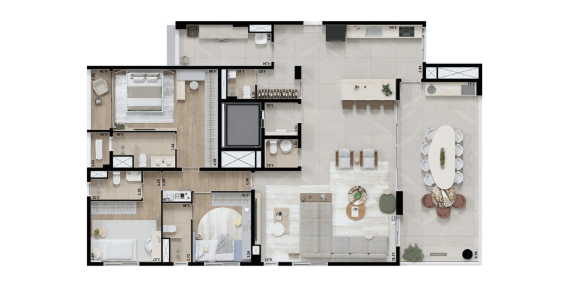 COMO UM AUTÊNTICO BAIRRO-JARDIM E A APENAS DOZE MINUTOS DA FARIA LIMA, VOCÊ ENCONTRA AQUI O QUE EXISTE DE MAIS SOFISTICADO NO ALTO PADRÃO DE SÃO PAULO. TERRENO AMPLO, COM FRENTE PARA TÊS RUAS IMPORTANTES DO BAIRRO E APARTAMENTOS COM LAYOUTS SEMELHANTES AOS DE CASAS, COM ESPAÇOS AMPLOS E POUCOS CORREDORES.